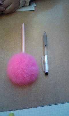 かわいいピンクのボンボン(古いかな?)が大きくて筆箱にもはいらないみたいです(笑)